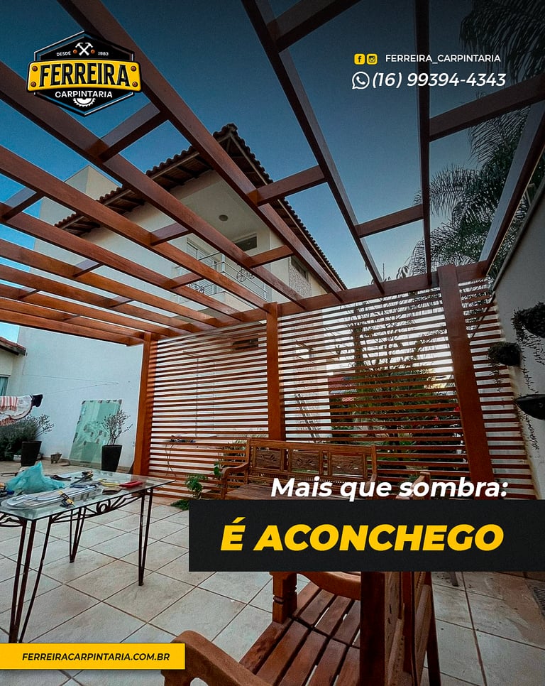 Nos dias agitados em que vivemos, encontrar um espaço de descanso dentro de casa se tornou essencial. Ter um ambiente acolhedor e bem planejado ao ar livre não é mais um luxo, e sim uma necessidade para quem valoriza bem-estar, convivência e momentos de paz. Um pergolado em madeira como este transforma qualquer quintal em um verdadeiro refúgio, trazendo mais charme, frescor e funcionalidade ao espaço. A Ferreira Carpintaria é especialista em estruturas de madeira que unem estética e durabilidade. Este pergolado foi projetado com acabamento impecável e integração perfeita com o restante do ambiente, criando um espaço harmonioso para descanso, leitura ou boas conversas. Além disso, a madeira utilizada é de alta qualidade e tratada para resistir ao tempo, valorizando o imóvel com um toque rústico e sofisticado. Se você deseja transformar seu quintal em um ambiente especial como este, entre em contato com a Ferreira Carpintaria e peça um orçamento personalizado. 📞 (16) 99168-6752 | Franca/SP.
